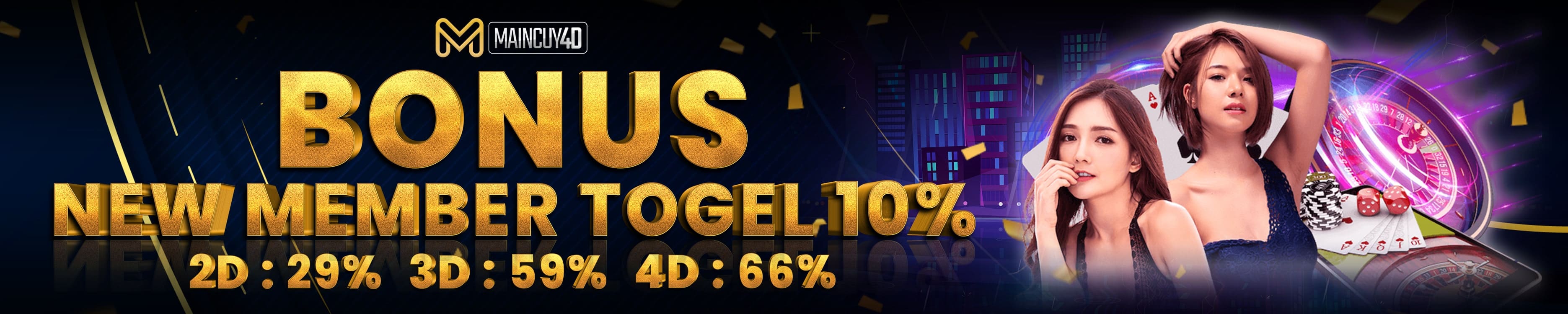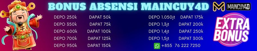 NB : MAINCUY4D berhak membatalkan Bonus atau Promo ini tanpa dispensasi (segala keputusan adalah mutlak), Apabila MAINCUY menemukan indikasi kecurangan, kesamaan data player, penipuan, kesamaan alamat IP, melakukan Safety Bet (bertaruh dua sisi)